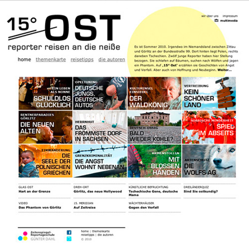 Es ist Sommer 2010. Irgendwo im Niemandsland zwischen Zittau und Görlitz an der Bundesstraße 99. Dort hinten liegt Polen, rechts daneben Tschechien. Zwölf junge Reporter haben hier Stellung bezogen. Sie schlafen auf Bäumen, suchen nach Wölfen und jagen ein Phantom. Auf "15 Grad Ost" erzählen sie Geschichten von Angst und Verfall. Aber auch von Hoffnung und Neubeginn.